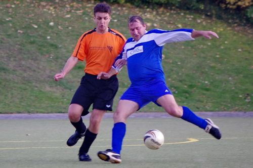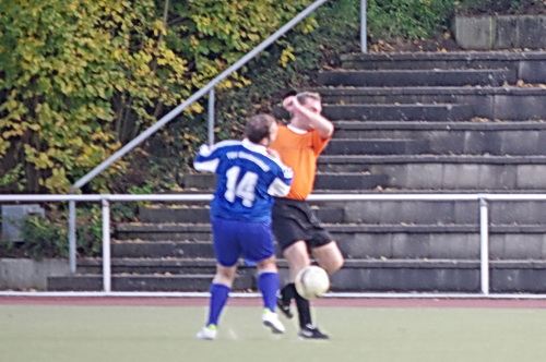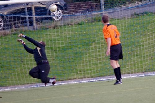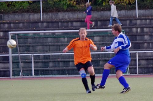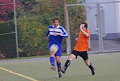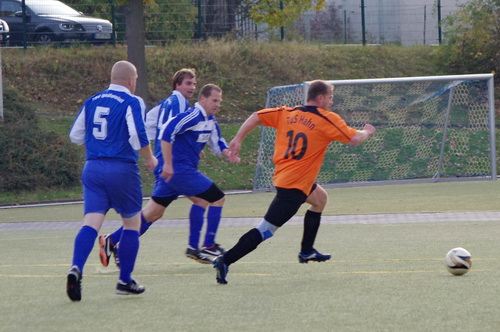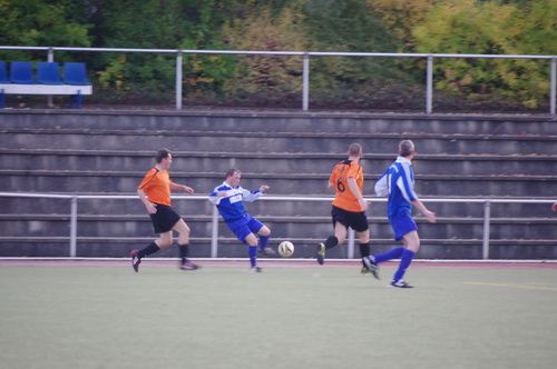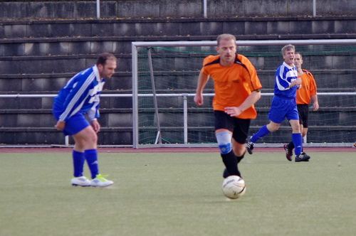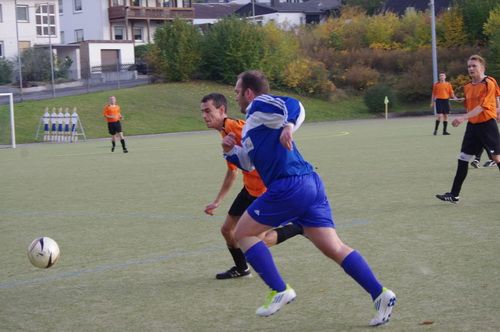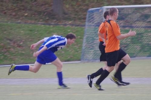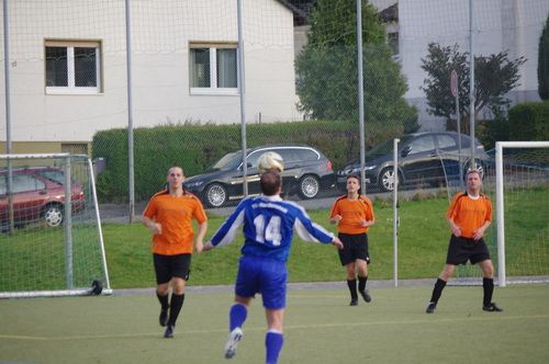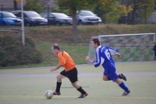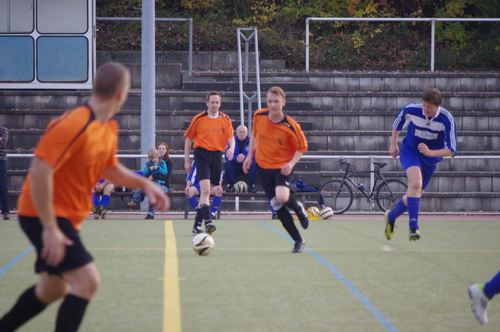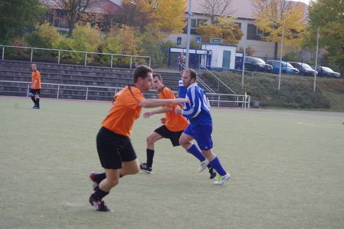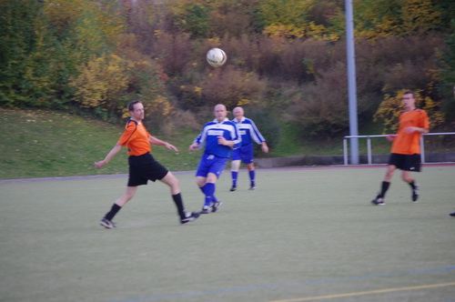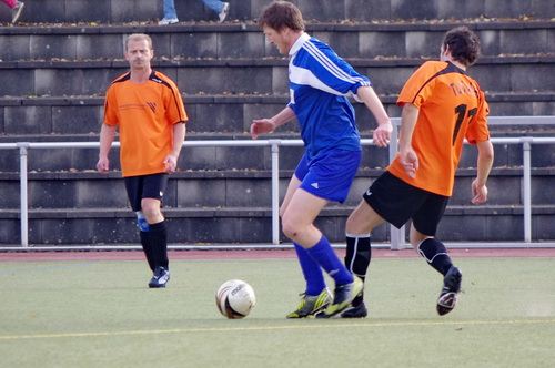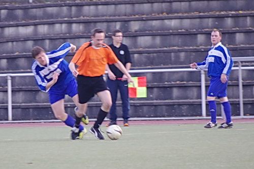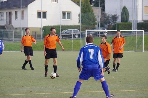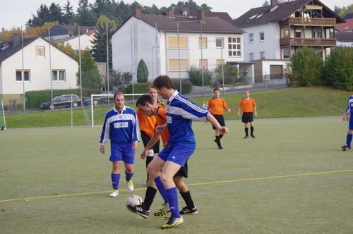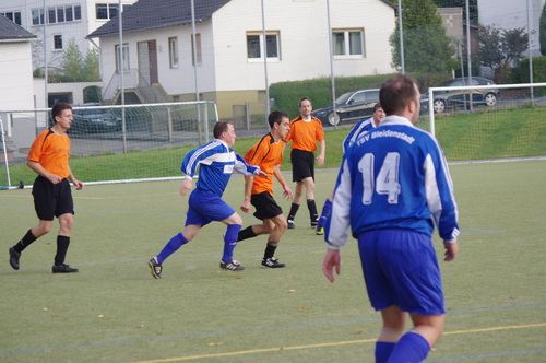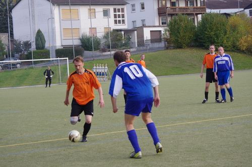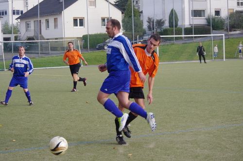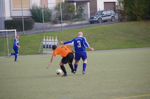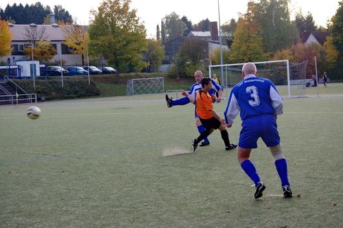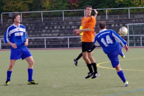 Die Anfangphase gehörte klar der Heimmannschaft. Wir brauchten gute 10 Minuten um uns auf den Gegner einzustellen. In der Mitte der ersten Halbzeit hatten wir dann offensiv unsere beste Phase in der Begegnung. Aus kürzester Distanz konnte Renato hier nur den Pfosten treffen. Kurz darauf zögerte Ingo im Strafraum der Blauen etwas zu lang, so dass er noch geblockt werden konnte, Knobi hatte auch noch eine gute Schussmöglichkeit, so dass die Führung für uns durchaus möglich war. Doch es sollte ganz anders kommen. Kurze Zeit nach diesen guten Chancen für uns, ging der TSV in Führung. Fünf Minuten später dann auch noch das 2:0 für die Gastgeber, was angesichts des kompakten Auftretens der Bleidenstädter, schon fast einer Vorentscheidung gleich kam.