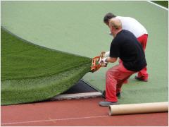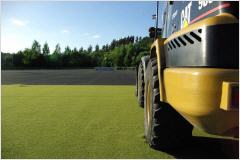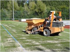 4. - 6. Woche - Verlegung des neuen Kunstrasens, Verfüllung mit Sand und grünem Gummigranulat