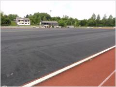 1. Woche - Abbau der alten Befestigungsschienen, Verfüllung der Hohlräume mit Gummigranulat, Entfernung der alten Belages