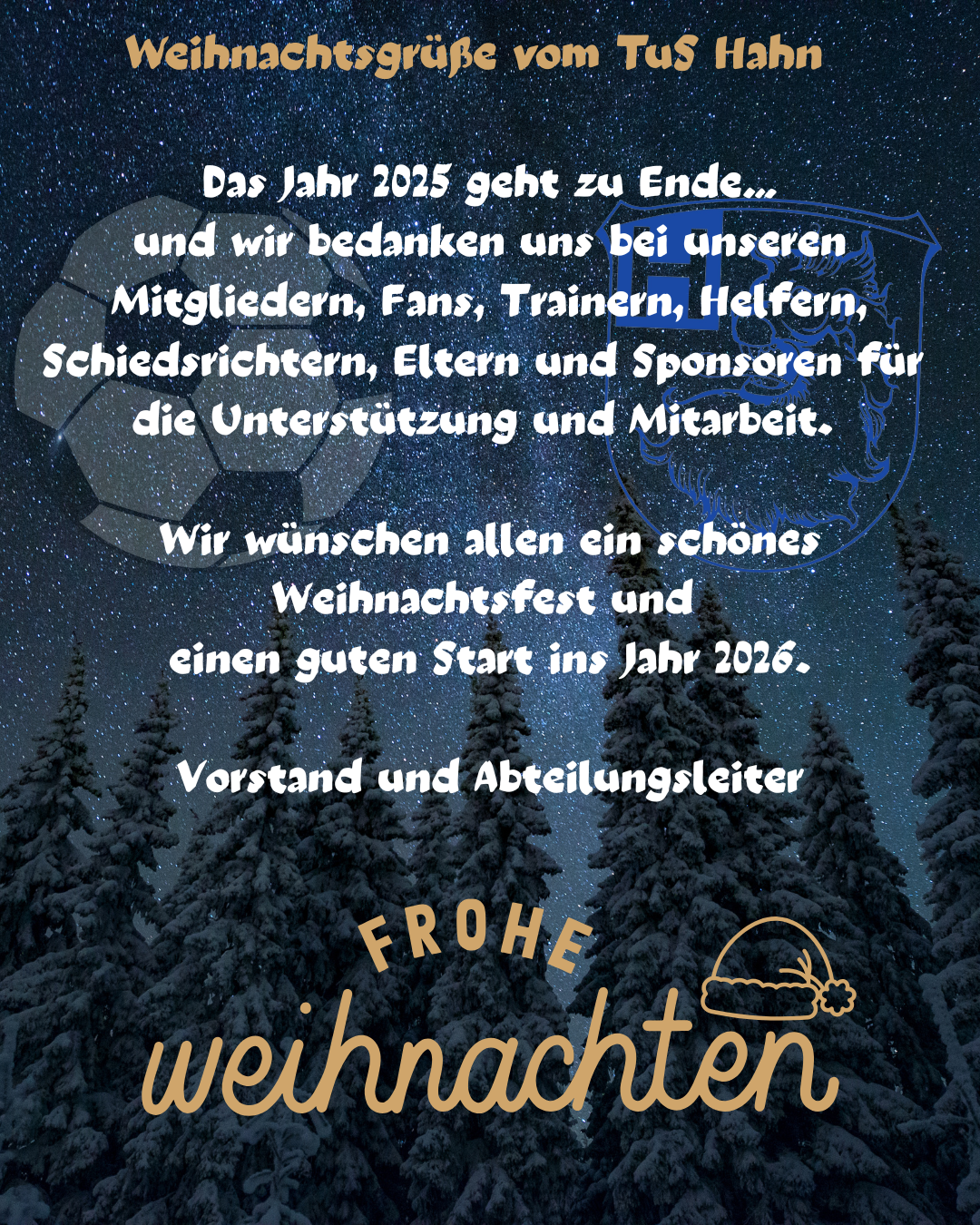 Ein weiteres Fußballjahr voller Emotionen, Teamgeist und Leidenschaft liegt hinter uns. Wir sagen Danke an alle Spielerinnen und Spieler, Trainer, Ehrenamtlichen, Fans und Unterstützer, die unseren TuS Hahn zu dem machen, was er ist.
